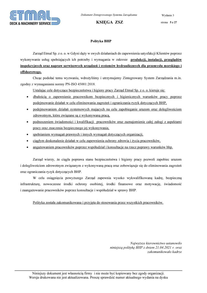 Nasze usługi są w pełni zgodne z najwyższymi standardami jakości i bezpieczeństwa, co potwierdzają certyfikaty ISO 9001:2015 oraz ISO 45001:2018, a także świadectwa uznania PRS. Dla każdego zrealizowanego zadania dostarczamy szczegółową dokumentację oraz raporty, które stanowią potwierdzenie wysokiej jakości naszych usług.